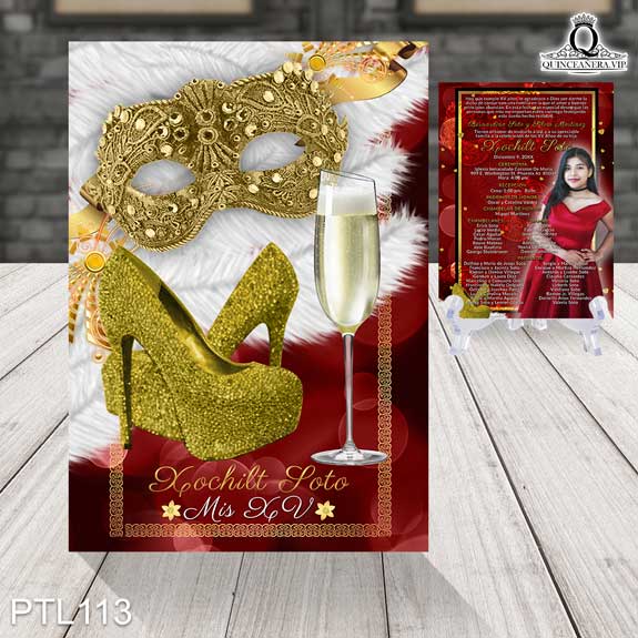 Invitaciones de 15 Años de Antifaz Zapatillas PTL113