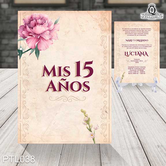 Invitaciones de 15 Años de Vintage Ornamentos PTL039